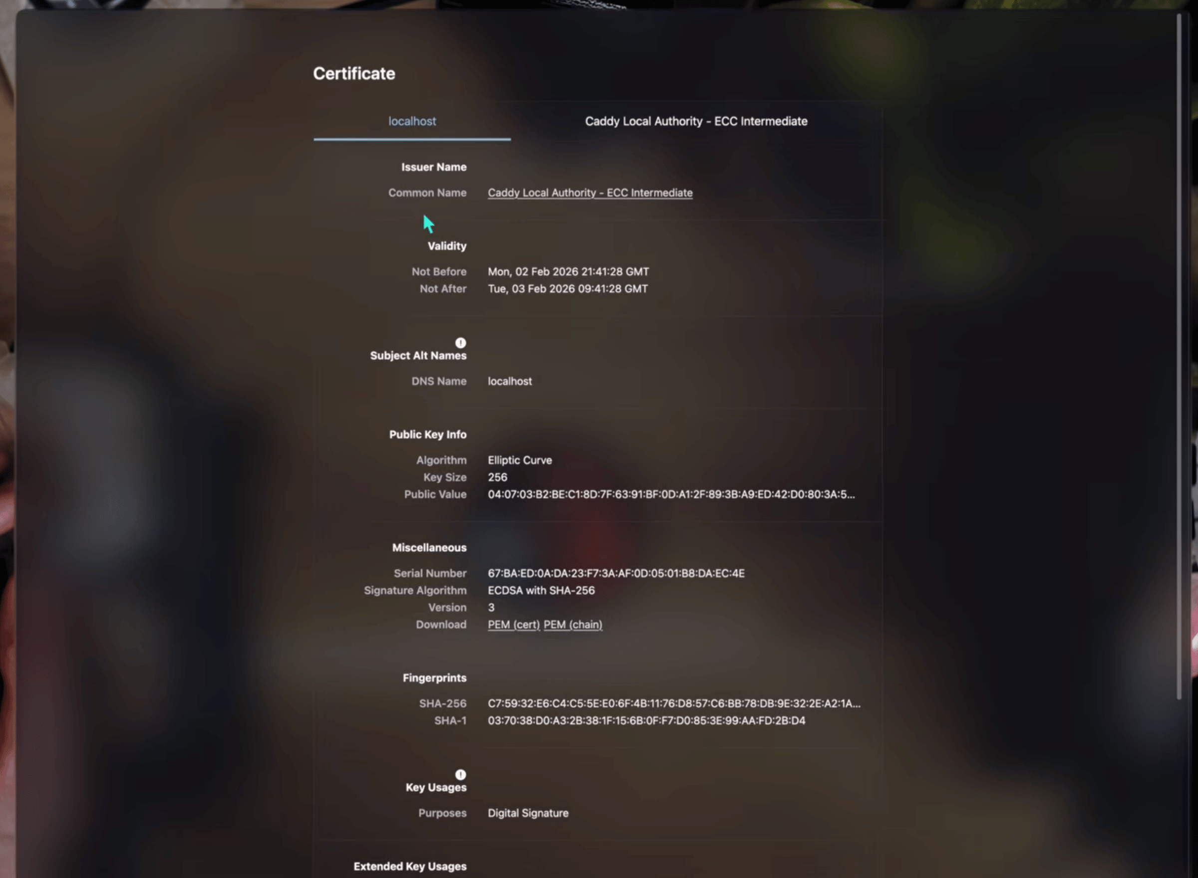 Caddy will literally ask for your password, install a root cert, and boom 💥 localhost on HTTPS. No more insecure flags needed in dev.